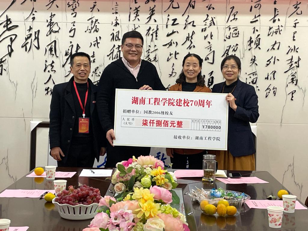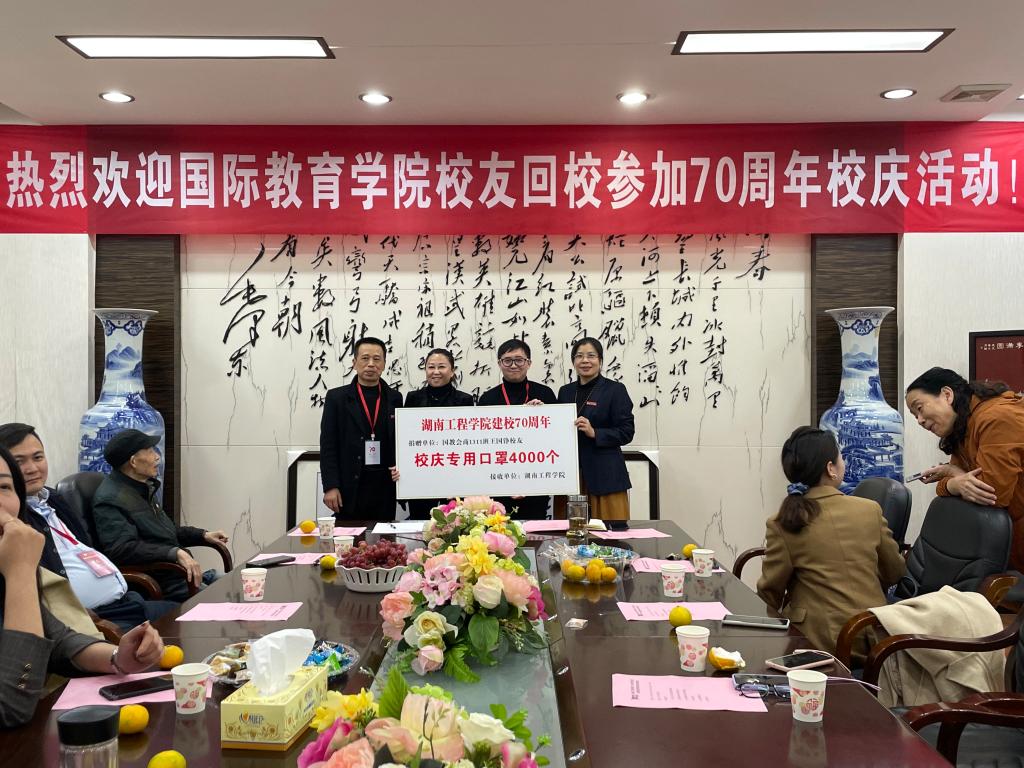 “拳拳学子心,浓浓母校情”。得知母校七十华诞,校友们早早为母校献上爱心。会上,学院为校友举行了隆重而简朴的捐赠仪式。在2004级校友赠送“锲而不舍 敢为人先”的校训苏绣、商英1311班王国铮校友赠送为母校特别订制的校庆专用口罩时,罗胜杰深情地说:“这不是简单的苏绣和口罩,他们绣的是爱心,缝的是情义”。