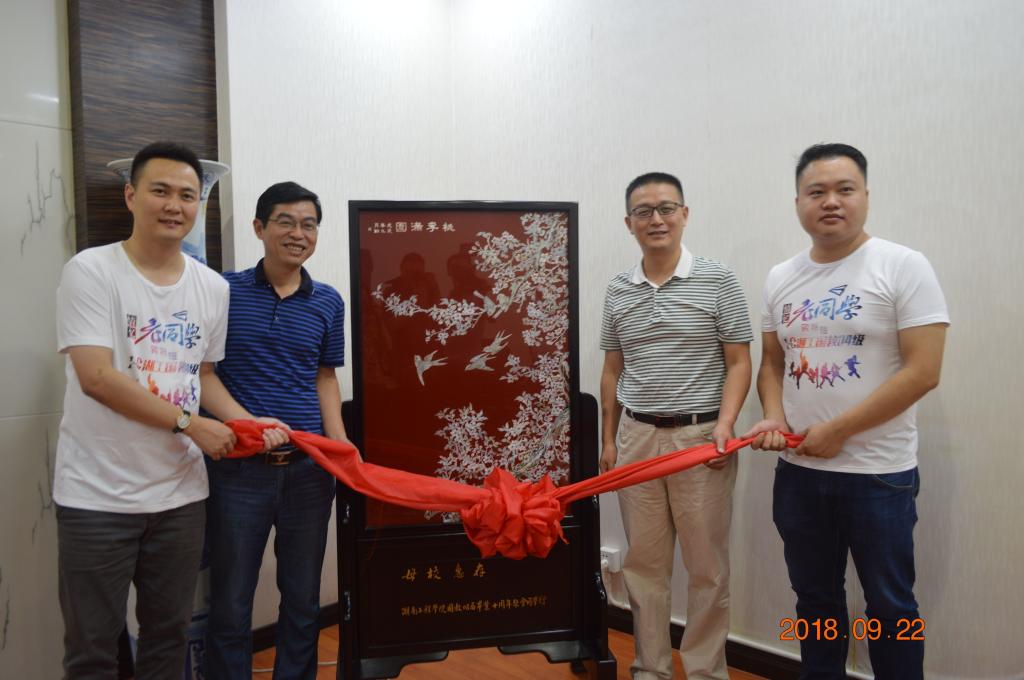 会上,校友们向学院赠送了湘绣“桃李满园”作为纪念,祝愿母校越办越好。